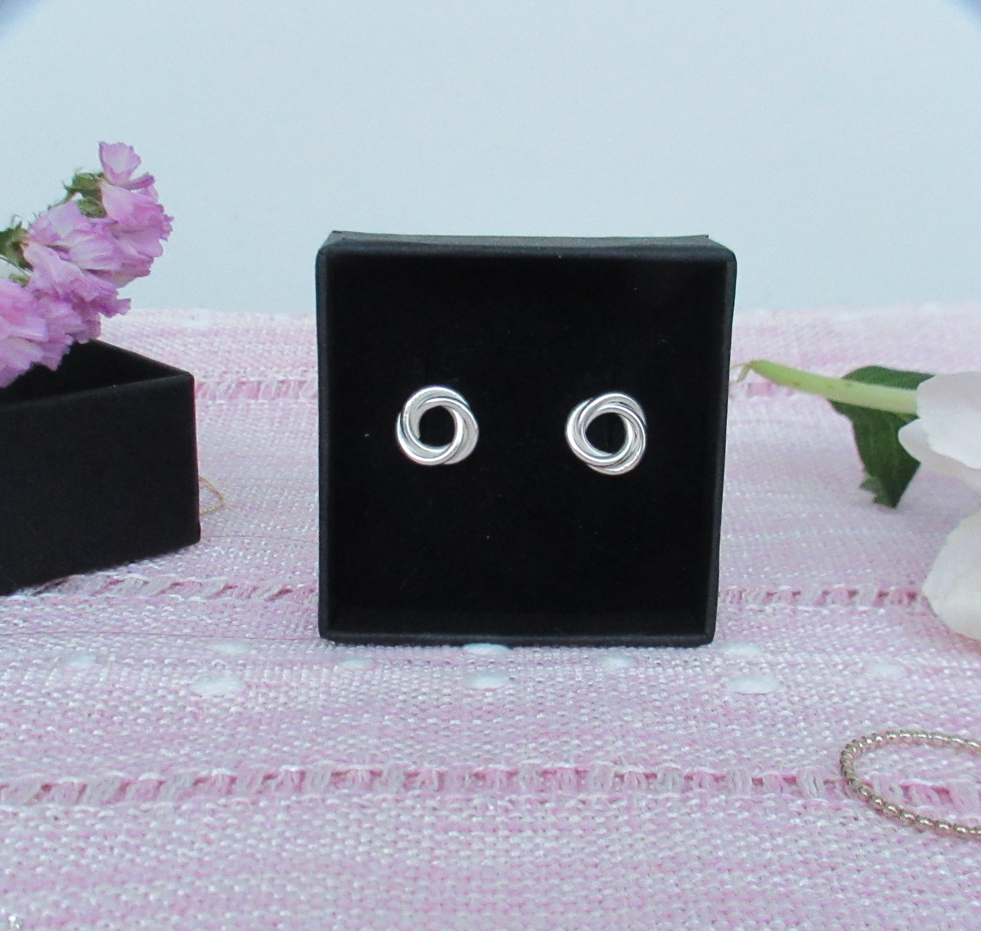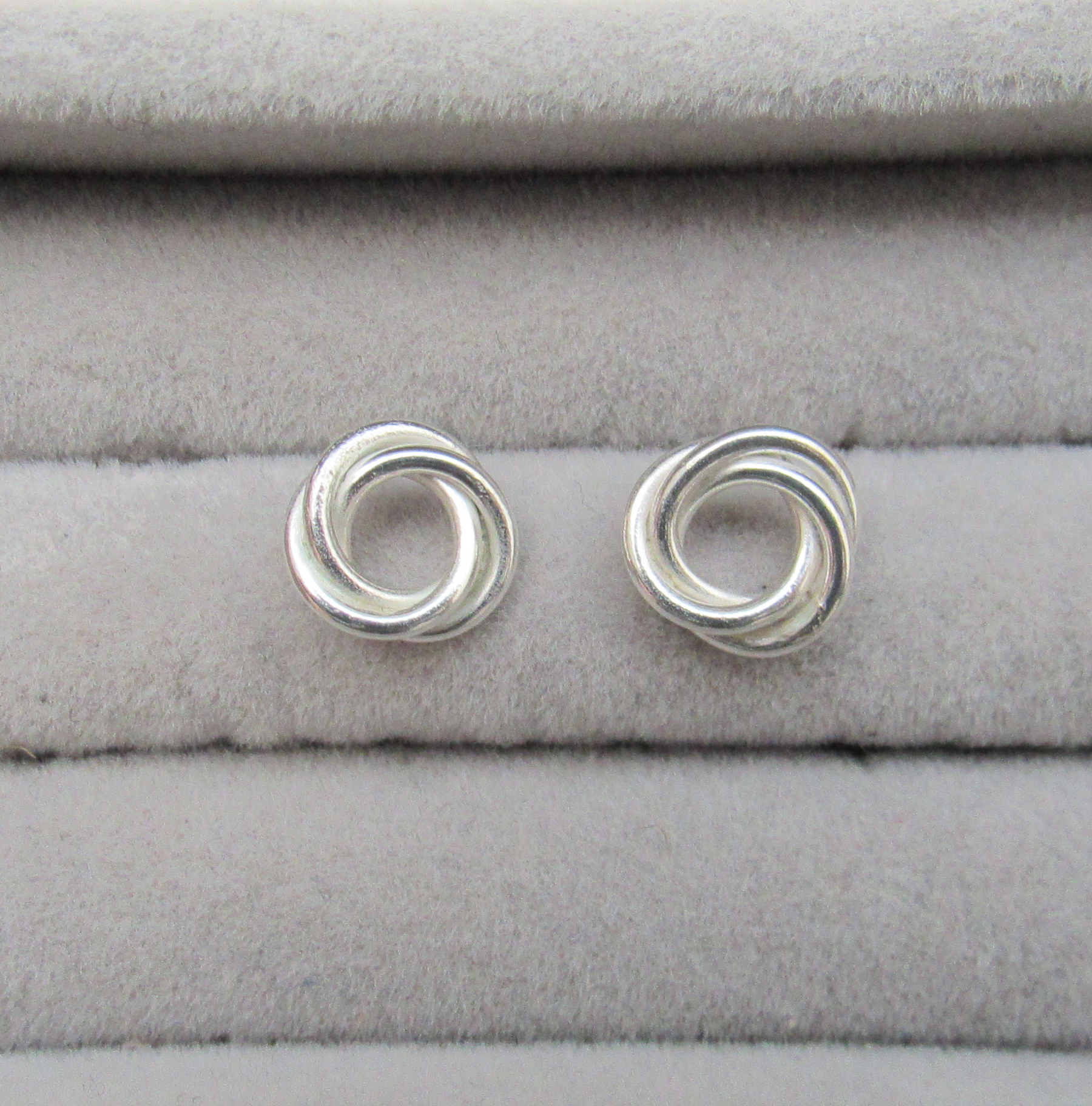 Elegant stud earrings, formed by hand from silver wire.