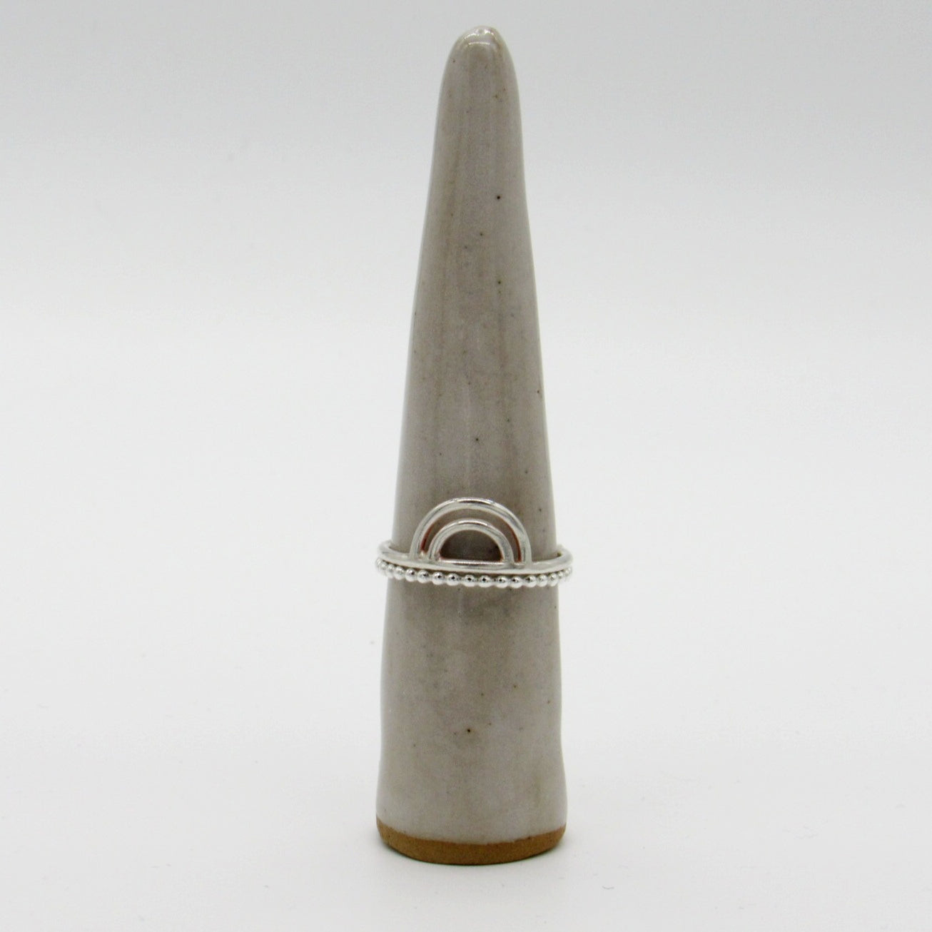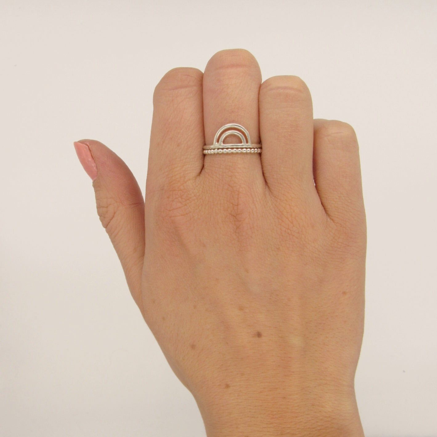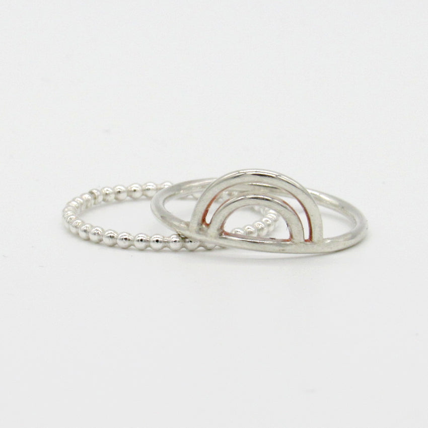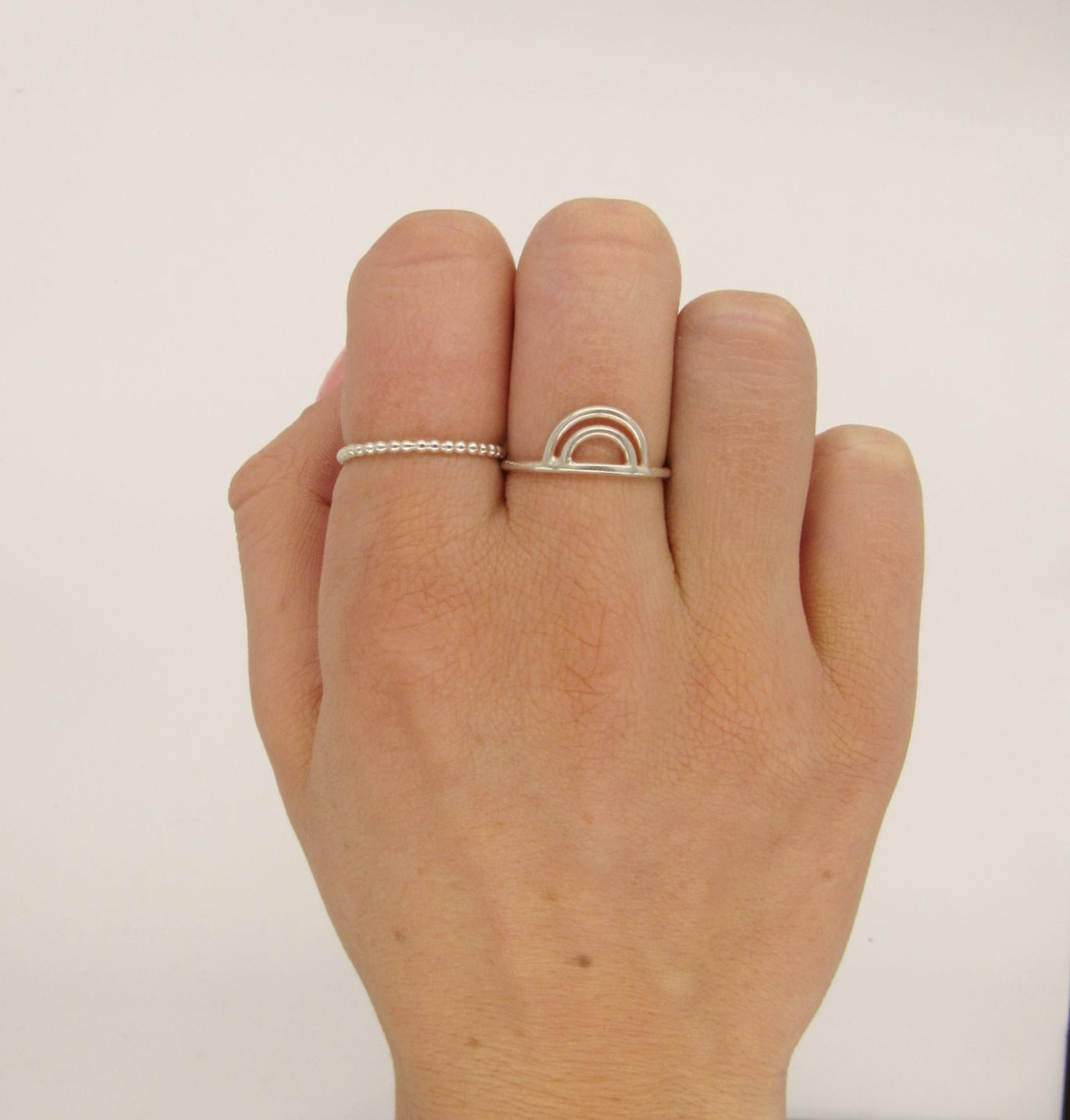 Handmade rainbow symbol ring paired with our beaded lightweight stacker. These sterling silver rings are ethically made using recycled silver. They work beautifully worn alone or as part of our stackable collection.